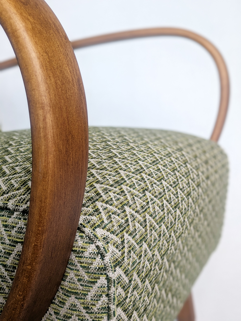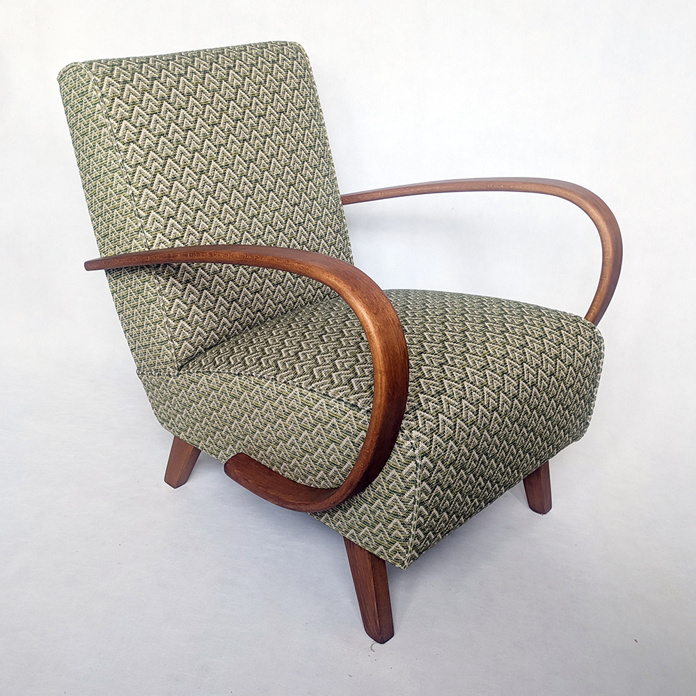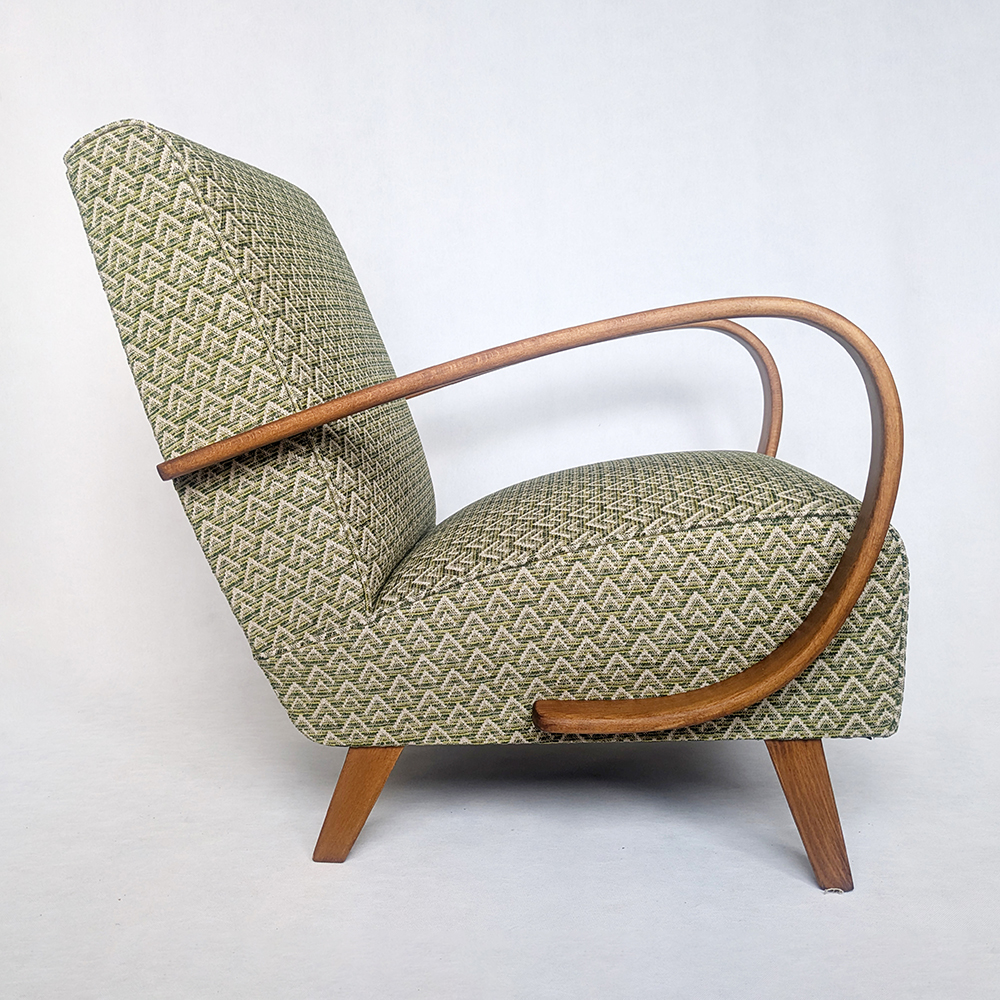 Toto křeslo Halabala C už svůj nový domov má, ale můžeme Vám na zakázku repasovat úplně stejné. Napište do formuláře nebo se nám ozvěte mailem!