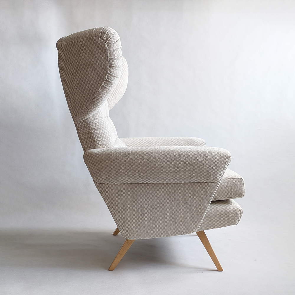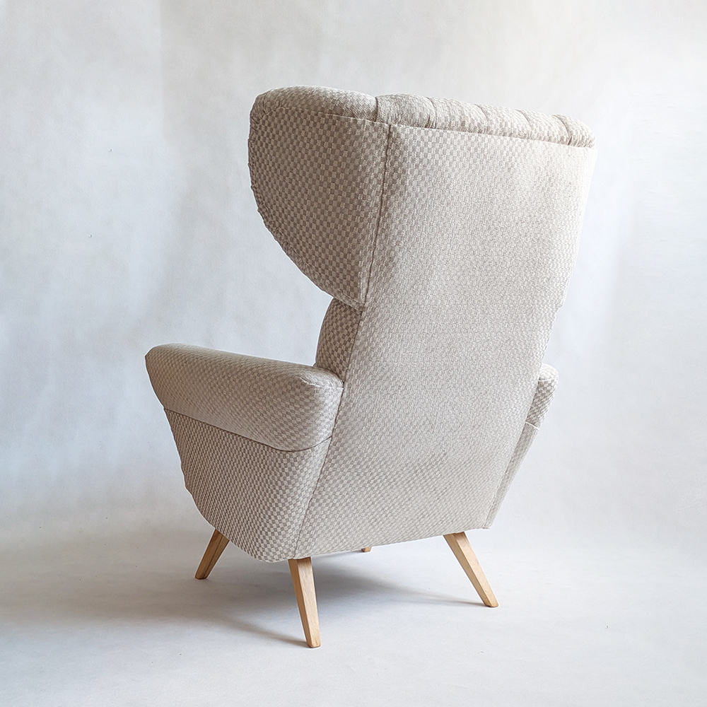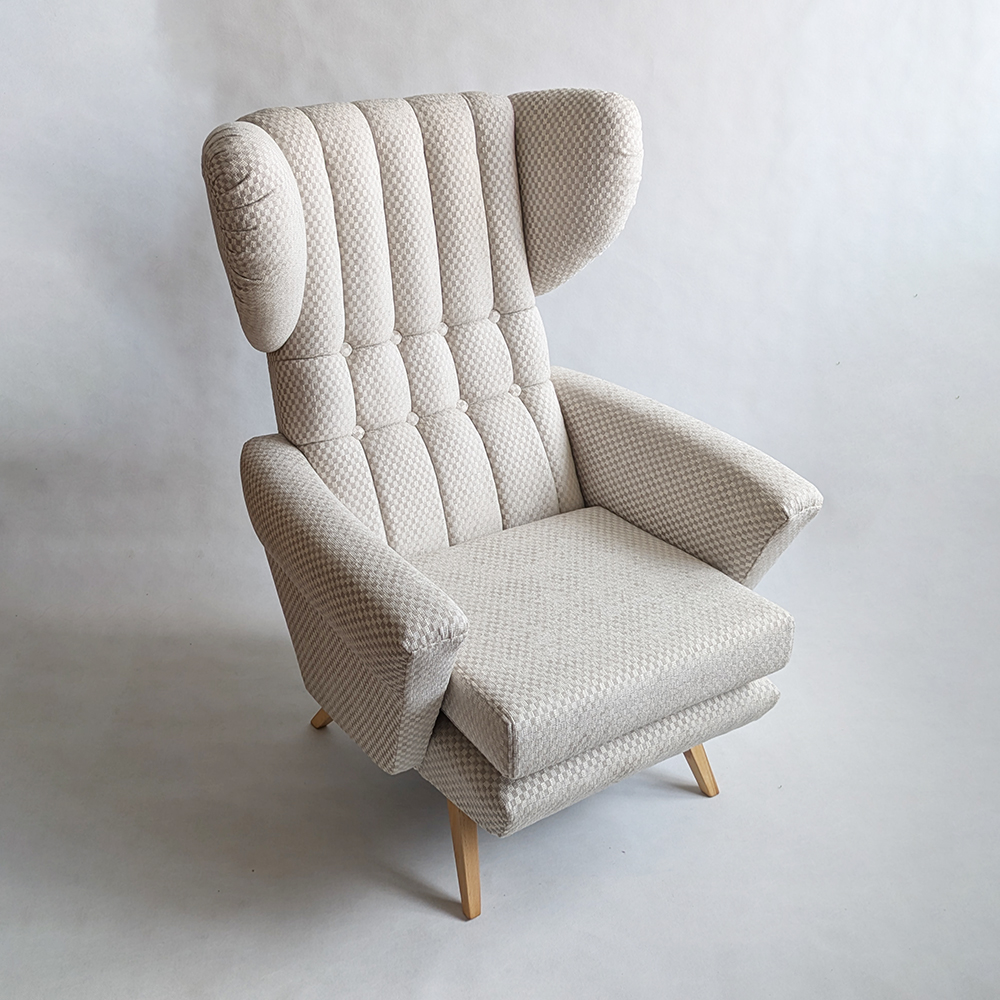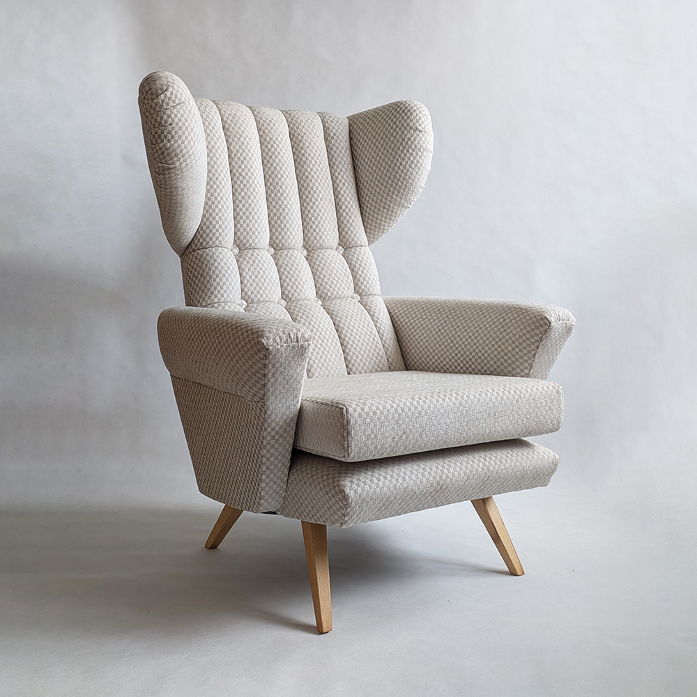 This wingback chair already has a new home, but we can custom restore an identical one for you. Please contact us to request a custom order!